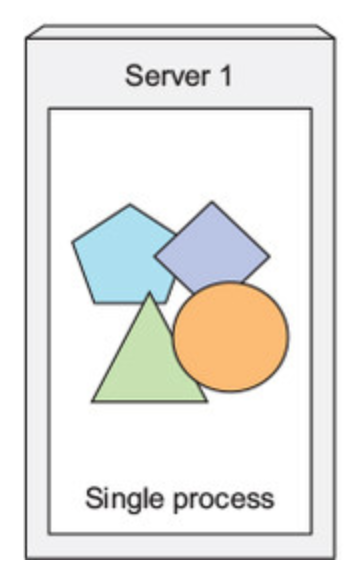 모놀리스 애플리케이션은 어플리케이션 하나에 모든 것을 통합하여 구현한 SW를 뜻한다. 프로세스 입장에서는 하나의 프로세스에서 모든 기능이 돌아간다고 볼 수 있다. 구현하는 방법에 따라 멀티 프로세스이거나, 여러 개의 데몬으로 돌아갈 수 도 있겠지만 결국 주문, 입출고, 채무채권 발행, 자금 회수나 대금 지급 등의 기능이 한 프로세스 안에 다 구현되어 있는 게 모놀리스 애플리케이션이다. 모놀리스 애플리케이션은 단일 프로세스를 어떻게 빨리 돌리냐가 관건이므로 수평 확장(scale out)보다는 수직확장(scale up)이 더 중요하고, 수평 확장을 한다고 해도 상당히 제한적이었다. 앞서 소개한 SAP의 경우 코드 한 줄 고쳤다고 전체 시스템을 리빌드 할 수는 없으니, 기능별로 부분 부분을 빌드하고 필요시 동적으로 다시 로딩하는 방법을 썼다. 이러다 보니 배포하는 도중에 기존 작업 중인 사용자들이 우르르 런타임 에러 화면을 보는 일도 다반사였다.
